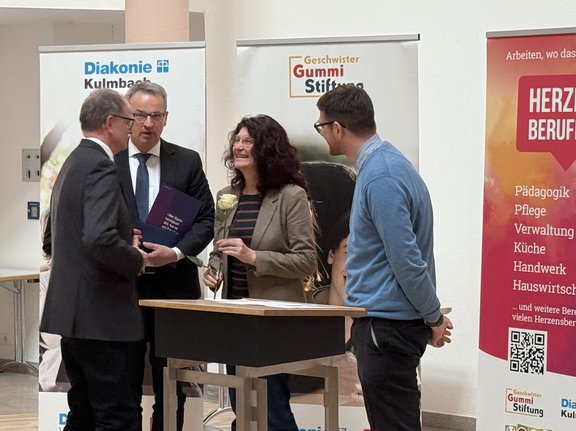 Ein besonderer Höhepunkt der Veranstaltung war die Ehrung zweier Mitarbeiterinnen, die dem jeweiligen Unternehmen bereits seit 40 Jahren verbunden sind: Carmen Günther von der Geschwister-Gummi-Stiftung und Sabine Niemann von der Die KITA gGmbH. Ihnen wurde feierlich die Ehrenurkunde der Diakonie Bayern überreicht – als sichtbares Zeichen der hohen Anerkennung für vier Jahrzehnte engagierten Dienstes.